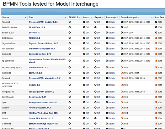 Figure 1‐1. BPMN MIWG tests tool support for model interchange