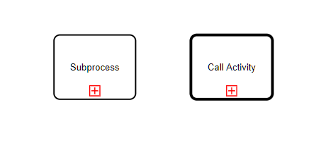 Call activity and subprocess share important characteristics. Both are simultaneously a single activity and an activity flow from start event to end event. And both may be rendered in the diagrams in two different ways: collapsed, denoted with a [+] marker at bottom center, or expanded, an enlarged rounded rectangle enclosing the flow. In BPMN 1.x, call activity and subprocess were actually variants of the same element. What we today know as a subprocess back then was called an embedded subprocess, and call activity was called a reusable subprocess. Of course, no one knew exactly what that meant. Some thought it had to with the shape - collapsed or expanded - but it had nothing to do with that. BPMN 2.0 resolved the distinction more clearly.