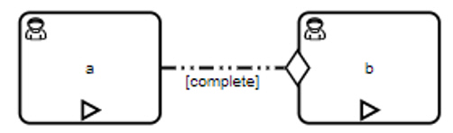 For example, in the diagram below, task b is enabled when task a is complete. Here there is no IF-part, i.e., the condition is true by default.