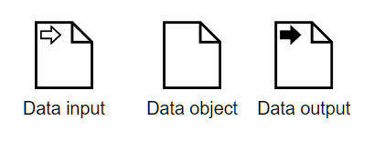 First, we need to distinguish process variables from task variables. Process variables are shown in the BPMN diagram, as data inputs, data outputs, and regular data objects. A data input signifies data received by the process from outside. When we deploy an executable process as a cloud service, a data input is an input parameter of the API call that triggers the process. Similarly, a data output is an output parameter of the API call, the response. A data object is a process variable created and populated within a running process.