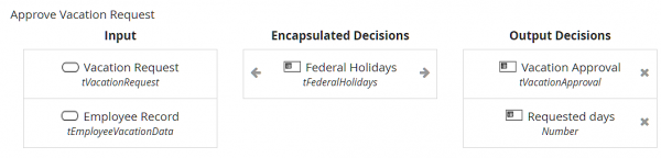 In BPMN, the Decision task Approve Vacation Request is bound to this decision service.