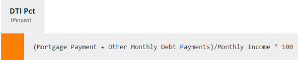 It's simple arithmetic. Anyone can understand it. This is the simplest boxed expression type, called a literal expression, just a FEEL formula in a box, with the decision name and datatype in a tab at the top. Decision table is another boxed expression type, and there are a few more. Each boxed expression type has a distinct tabular format and meaning, and cells in those tables are FEEL expressions. In similar fashion, here is the literal expression for DTI Pct: