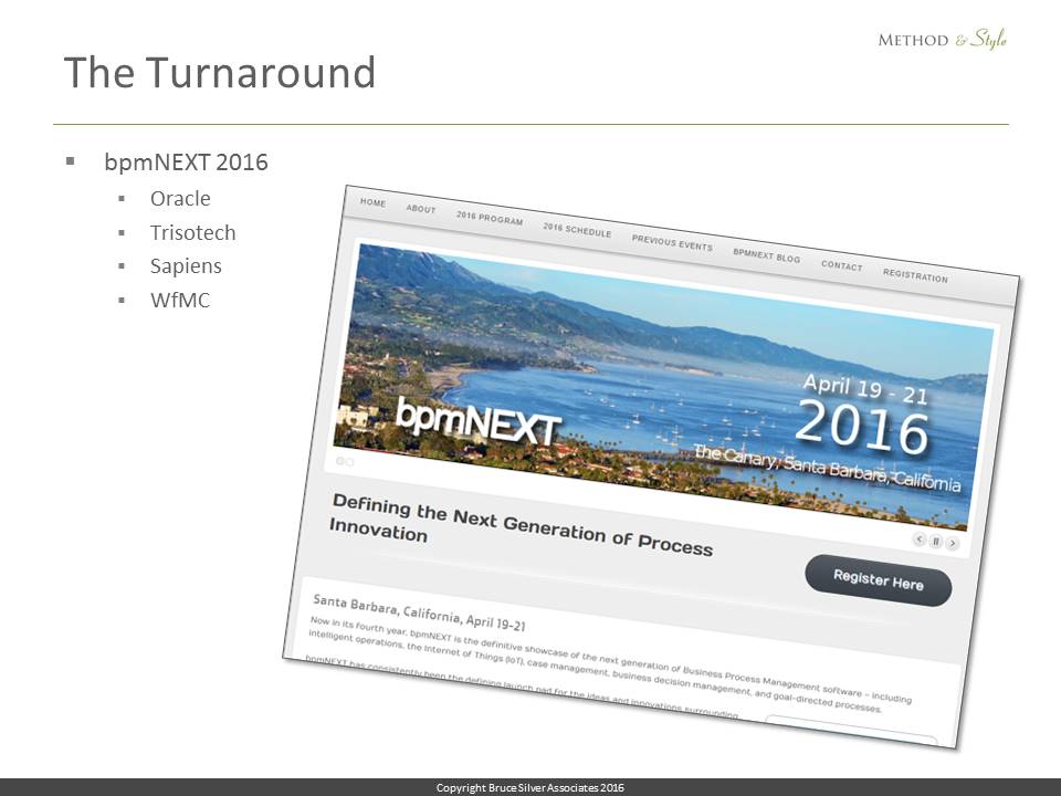 Many of the heroes of this story are here at this event. You should thank them: Gary Hallmark, Alan Fish, Jan Vanthienen. Some who were there at the beginning, went away, and now have come back: Larry Goldberg, Jacob Feldman, Mark Proctor. The momentum is building.