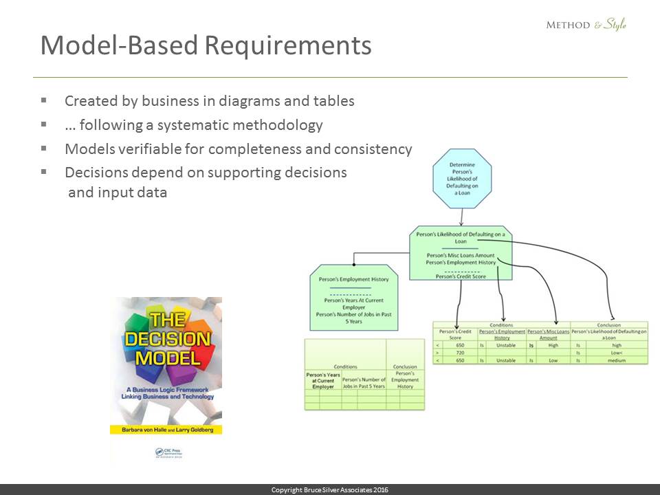 - Text-based business requirements documents lack the ability to ensure rules are complete and consistent.