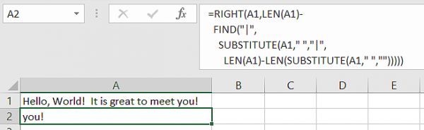 Right(A1,LEN(A1) - ... )) – Returns all characters after that |