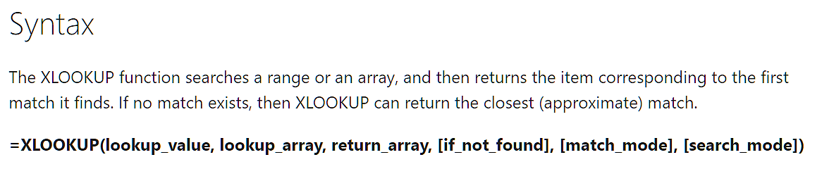 No problem. Excel has many built-in functions in its Formulas ribbon. The modern lookup formula is called XLOOKUP, with the explanation below: