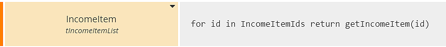 To generate the table, we need to iterate the function call over the list of income item ids :