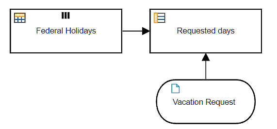 Now, notice that here we were just trying to get the count of requested days from the Vacation Request, and this required a DRD with 7 decisions. In practice, getting this count is just one of many things we're trying to do with Vacation Request, and if we need 7 decisions for each of them we're going to have a DRD with dozens of nodes, making it difficult to maintain. This is where a context comes in. A context lets us decompose the logic into small steps without cluttering up the DRD. With a context, our DRD looks like this, a single decision.