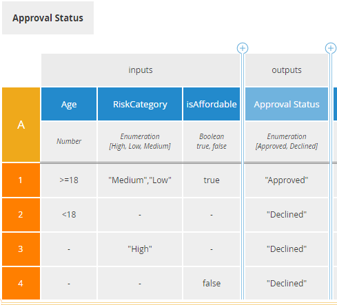 Now you tell me, which one is more business friendly?if Risk in ["Low", "Medium"] and PTI <0.3 then "Approved" else "Declined"