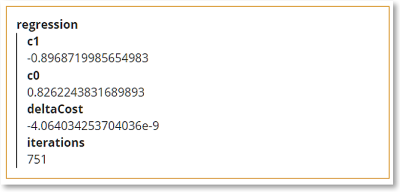 Executing this model with initial guess {c0:0, c1:0} for the coefficients and 0.1 for the learning rate a, we get the result below: