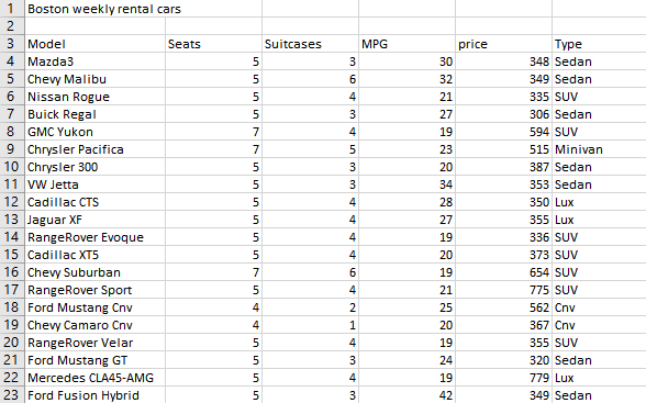 Figure 24. Raw rental car data, BOS weekly rental, hertz.com