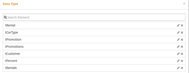 You see it is a structure with 6 components. The last component, Past Rentals, is type tRentals, a collection of type tRental, where tRental is a structure with 3 components, the last of which, CarType, is Text with an enumeration constraint. Its value can only be “Economy”, “Compact”, or “Full Size”.