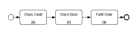 Here is a familar diagram of an order handling process in BPMN - three subprocesses in a sequential flow. But when you drill down, you typically want to say that if Check Credit fails, you terminate the order. Something like this: