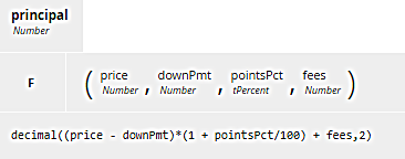 This simple example points out several problems where BKMs can offer some help. First, the decision modeler may know that a formula exists to calculate the loan payment given the loan amount, interest rate, and term, but has no idea what it is. Second, even knowing the formula, the FEEL expression involves the specific names of the loan components, which differ from lender to lender. And third, you want this calculation to work exactly the same way with every lender. Deep down, the formula is the same, even though the names of the variables change from one lender to the next. You'd prefer to be able to reuse the formula in any decision logic, no matter what the input data elements in the DRD are called.